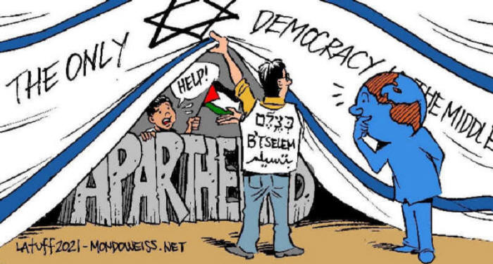 Im Januar brandmarkte auch die prominente israelische Menschenrechtsgruppe B'Tselem Israel als einen "Apartheid"-Staat, der "die jüdische Vorherrschaft zwischen Mittelmeer und Jordan fördert und aufrechterhält." Dies spiegelte die Schlussfolgerung eines UN-Berichts von 2017 wider, der auf Druck der USA und Israels auf Eis gelegt wurde. Quelle