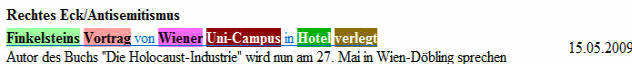 linksextremen Szene beworben.[10] Aber schon angesichts der Bedeutung Finkelsteins für