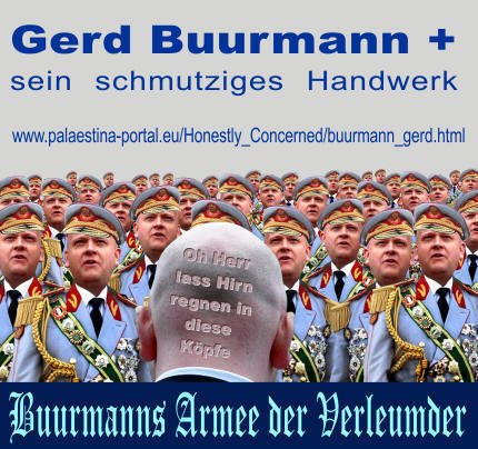 Was macht dieser Buurmann (Nirgendwo Tapfer)? In der üblichen Methode derer die die Wahrnehmung über die Wirklichkeit im Nahen Osten unterdrücken wollen, arbeitet er mit widerlichen Übertreibungen, Entstellungen, Diffamierungen, Manipulationen und Unterstellungen.