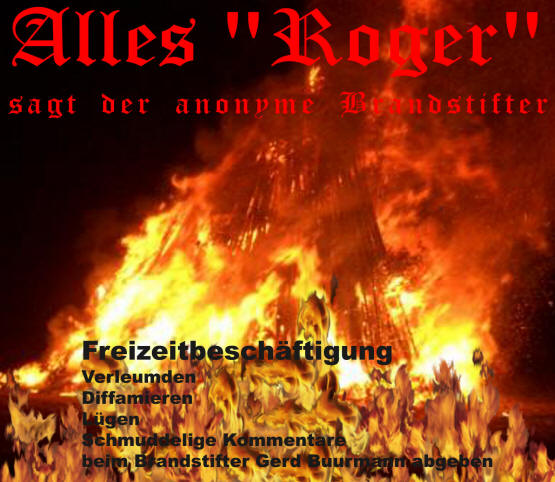 Hier spricht dieser "Roger" wohl Walter Franke und auch mich an. Ich kenne nicht die Einstellung von Herrn Franke. Nie und nirgendwo habe ich gegen "gegen Homosexuelle, Prostituierte oder Türken" gehetzt. Dies spiegelt vielleicht die wahre Einstellung dieses "Roger" der zu feige ist, seine Auswürfe unter seinem Namen zu verfassen.