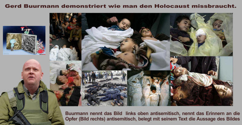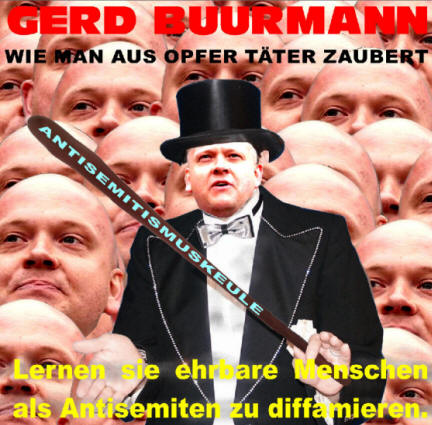 Um es einmal kurzgefasst klarzustellen. Es geht meinerseits bei dieser Dokumentation des Treibens dieses Gerd Buurmann nicht um die Auseinandersetzung Kritiker gegen Juden, gegen Israel. Ich denke, jemand der (mit sehr vielen ehrenwerten Juden und Israelis zusammen) Vergehen Vergehen nennt ist ein besserer Freund Israels als der, der jedes Verbrechen verschleiert und deckt. Er ist nicht nur Mitwisser sondern auch Mittäter.