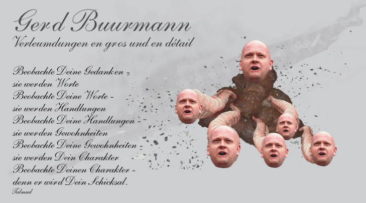 Die Interpretation der Collage ist, das Gerd Buurmann, weil er so hetzt und verleumdet, (den Bezug zur Kölner Klagemauer wird hergestellt) ein Knallkopf ist.