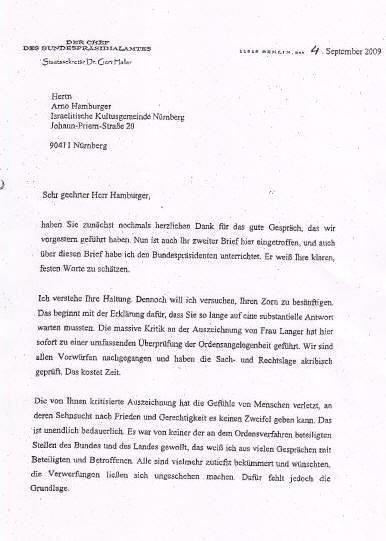 der Bundespräsident nicht an Arno Hamburger schrieb -