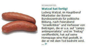 Watzal zu diffamieren. Hier stellt er dubiose Informationen zusammen, ein