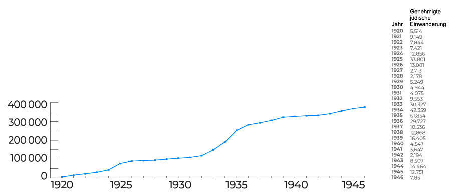 1920 und 1946 in Palästina an. Der Höhepunkt wurde 1935