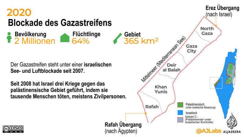 Blockade des Gazastreifens Seit 2007 steht der Gazastreifen unter israelischer See- und Luftblockade. Seit 2008 hat Israel drei Kriege gegen das palästinensische Gebiet geführt und dabei tausende Menschen getötet, meistens Zivilpersonen 1948 bestand die Bevölkerung im Gazastreifen aus weniger als 100.000 Menschen. Heute ist es die Heimat von zwei Millionen Menschen, 64 Prozent von ihnen sind Flüchtlinge.