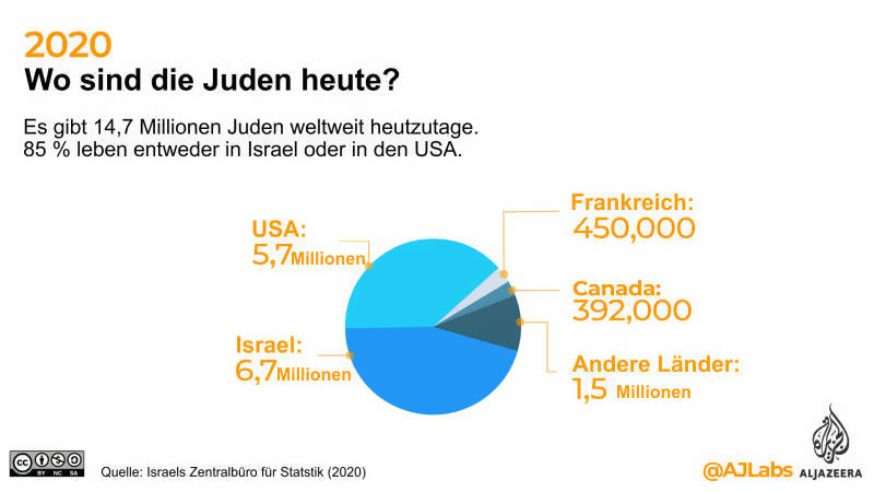 sind die Juden heute? Laut dem israelischen Zentralbüro für Statistik gibt es etwa 14,7 Millionen Juden weltweit heutzutage. Von ihnen leben 6,7 Millionen in Israel, 5,7 Millionen in den USA, 450.000 in Frankreich, 329 000 in Kanada, 292 000 im Vereinigten Königreich, 180 000 in Argentinien und 165 000 in Russland.