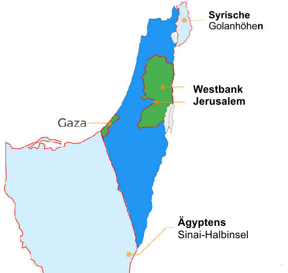 und die Westbank Während des Krieges vom Juni 1967 besetzte Israel das gesamte historische Palästina und vertrieb weitere 300.000 Palästinenser aus ihren Häusern. Israel nahm auch die syrischen Golanhöhen im Norden und die ägyptische Halbinsel Sinai im Süden ein. 1978 unterzeichneten Ägypten und Israel einen Friedensvertrag, der zum israelischen Rückzug aus ägyptischem Gebiet führte.