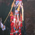 dünne Schnüre mit kleinen Troddeln herab, die von gleichem