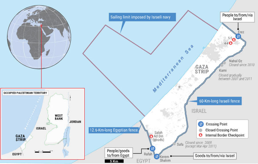 Im Gazastreifen eröffneten die israelischen Streitkräfte in mindestens 25 Fällen ein “Warnfeuer” in der Nähe von Israels Trennzaun oder vor der Küste. Dabei wurden zwei Fischer verletzt, fünf weitere verhaftet und zwei Fischerboote beschlagnahmt. In drei Fällen führten die israelischen Streitkräfte Landeinebnungen in der Nähe des Trennzauns, im Osten von Gaza Stadt, Khan Younis und dem mittleren Gebiet aus. Außerdem wurden vier Palästinenser von israelischen Streitkräften verhaftet, als sie versuchten, den Trennzaun in Israel zu überqueren.