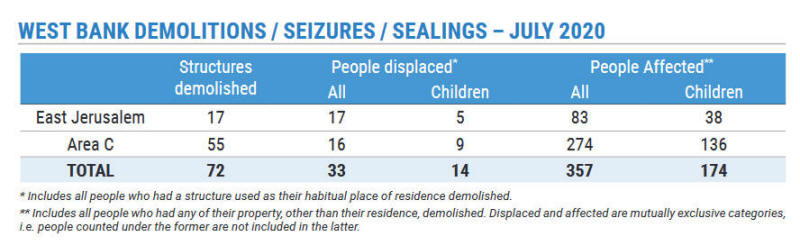 Im Juli zerstörten oder beschlagnahmten die israelischen