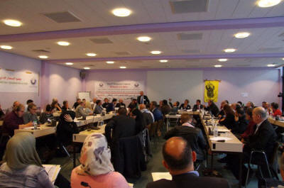 Dr. Ahmad Muhaisen und Mahmoud Zabin aus Ramallah (Er arbeitet in einem Büro der PLO in Ramallah) im Hintergrund Marwan Barghuthi