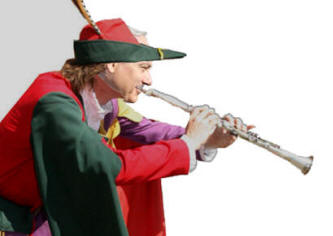 sein Blasinstrument und spielte eine hübsche Melodie, dass alle