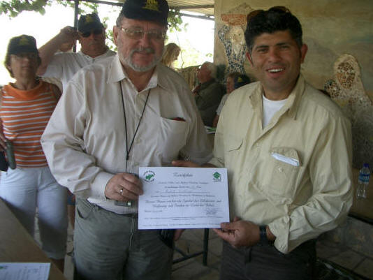 2008 hatten die Grünhelme auf dem Berg eine Solaranlage installiert (Fabian Jochem und Thomas Just). Der Berg bekommt im Unterschied zu den umliegenden fünf Kolonien jüdischer Siedler keinen Strom. Im Januar 2009 hatten wir die Solaranlage in Anwesenheit des Vorsitzenden des Auswärtigen Ausschusses des Bundestages Ruprecht Polenz eingeweiht und eröffnet. Im Mai 2009 kam eine Delegation der Besatzungsbehörde auf den Berg mit einer sog. Demolition order, einem Zerstörungsbefehl für sechs verschiedene Objekte auf dem Berg, darunter die Solaranlage. Entweder würde Daoud Nassar diese eigenhändig zerstören oder ein Bulldozer würde in drei Tagen kommen und die sechs Objekte dem Erdboden gleichmachen. Durch den beherzten sofortigen Einspruch des MdB Ruprecht Polenz beim israelischen Botschafter und dem Auswärtigen Amt gelang es, dass dieser Zerstörungsbefehl nicht durchgeführt wurde.