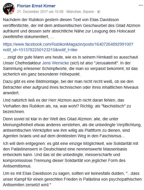 Übrigens lügen Sie, Herr Atzmon, wenn Sie behaupten, die gegen Sie vorgebrachten Zitate seien sämtlich erfunden.