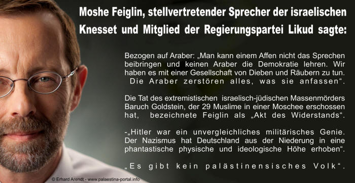 Foto des „Hass-Politikers“ Moshe Feiglin vorangestellt. Fazit des