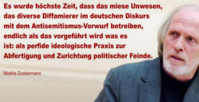 Da war Gefahr im Verzuge: Broder und seine Leute (wie übrigens auch der Zentralrat) mussten befürchten, dass der Wind sich drehen würde und plötzlich das so lange gehütete Tabu, Kritik an Israels Politik zu üben, fallen würde. Da musste sofort gegengerudert werden. Der ganze skandalöse Vorgang der Denunziation Augsteins hat aber auch sein Gutes. Der Israeli Moshe Zuckermann hat es so formuliert: „Es wurde höchste Zeit, dass das miese Unwesen, das diverse Diffamierer im deutschen Diskurs mit dem Antisemitismus-Vorwurf betreiben, endlich als das vorgeführt wird, was es ist: als perfide ideologische Praxis zur Abfertigung und Zurichtung politischer Feinde. Dass es diesmal jemanden getroffen hat, der nicht zu den ‚üblichen Verdächtigten‘ gehört, ist, so besehen, ein günstiger Fall. Plötzlich verteidigen ihn Leute, die in dieser Hinsicht selbst einiges auf dem Kerbholz haben.