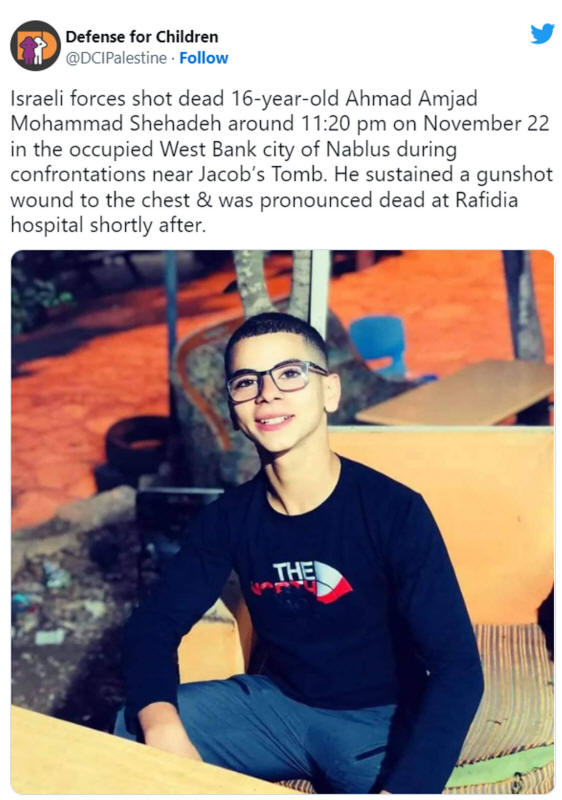 Mahdi Muhammad Hamdallah Hashash, 15, starb, nachdem er am 9. November