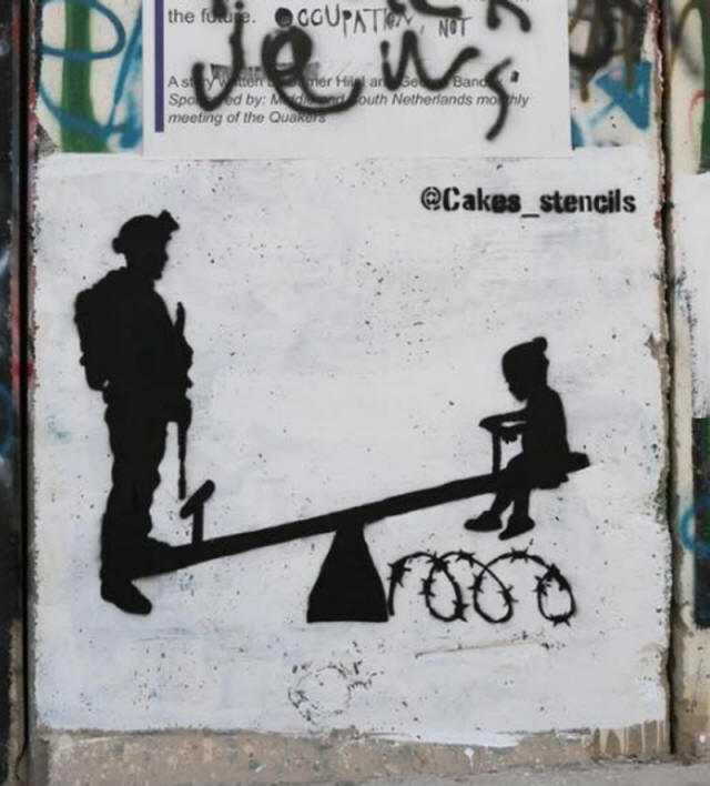 Mauer - Tortenschablonen an der Mauer 6 gesehen in Bethlehem