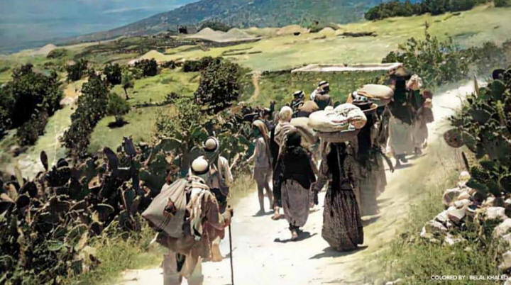 Schwarz-Weiß-Bilder der Nakba-Ereignisse zu