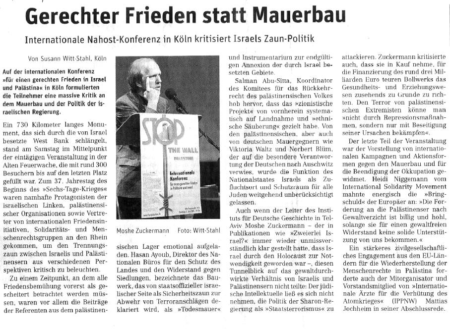 gegen den Mauerbau in Palästina und gegen die Besatzung