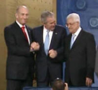 Ehud Olmerts doppeltes Spiel - Israels Premier in schwieriger Mission: Auf der Friedenskonferenz in Annapolis macht sich Ehud Olmert für einen Palästinenserstaat stark. Doch seinen Landsleuten versichert er gleichzeitig, ein solchen Vertrag werde es nur geben, wenn der Terror endet. Wie das gelingen soll, verrät er nicht. Aus Washington berichtet Christoph Schult mehr... [ Forum ]